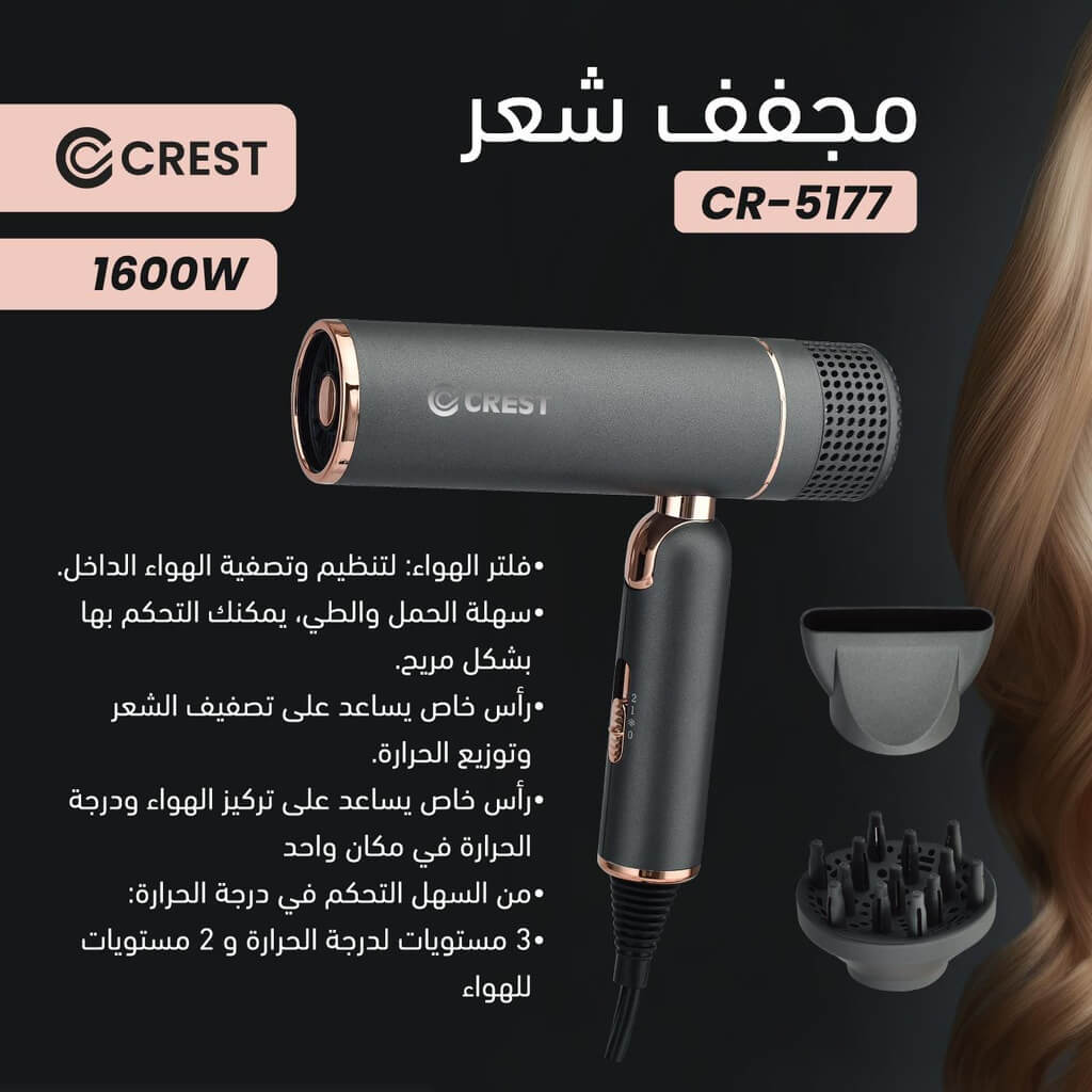 Crest Hair Dryer CR-5177 Dark Grey/Gold 1600Watt